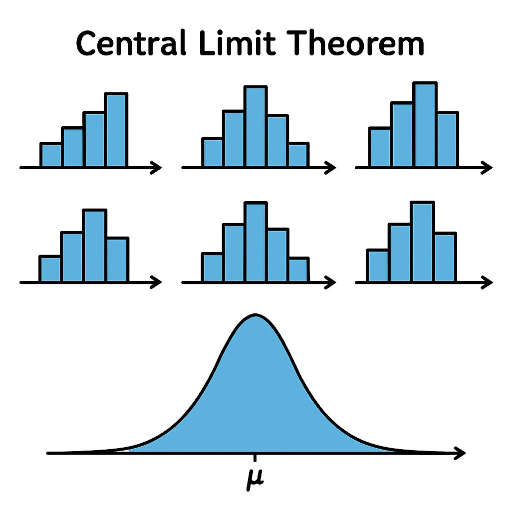 中心極限定理をざっくり言うと、「元の確率変数がどんな分布に従っていても、その独立なコピーをたくさん足し合わせたもの(あるいはその平均)は、正規分布(ガウス分布)に近づく」という驚くべき定理です。